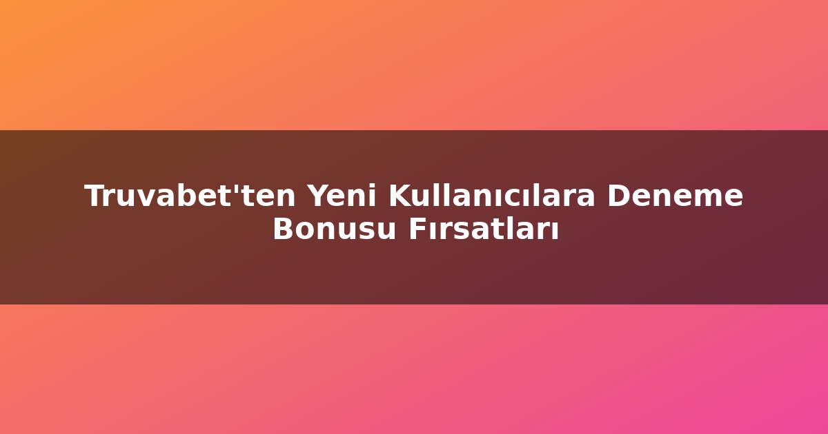 Bahis dünyasında yeniyseniz veya uzun zamandır bahis yapıyorsanız, deneme bonusları sizin için büyük bir fırsat olabilir. Özellikle yatırım şartsız deneme bonusu veren siteler ile bahis deneyiminizi kârlı hale getirebilirsiniz. 2026 yılı itibarıyla, Truvabet gibi platformlar 500 TL’lik deneme bonusu ile dikkat çekiyor.